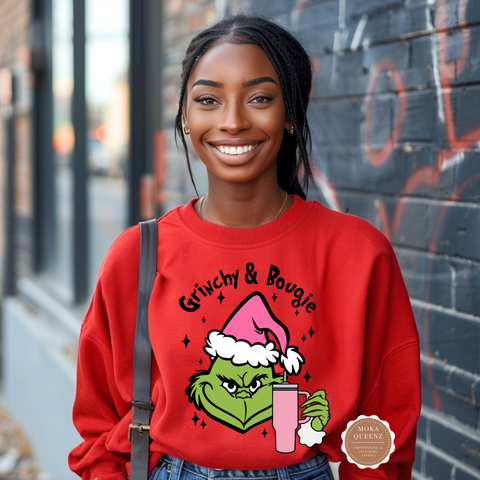 Serve holiday sass in style with our Grinchy and Boujie Christmas Sweatshirt! 🎄💚 This festive crewneck mixes playful Grinch vibes with boujie holiday energy—perfect for Christmas parties, girls’ night, or rocking your unapologetic holiday mood.
