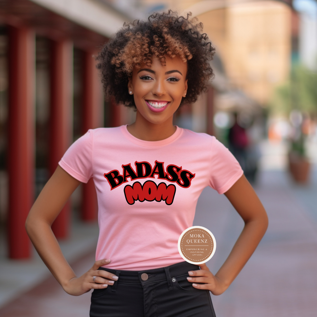 Celebrate motherhood with attitude! This Badass Mom T-shirt is a bold graphic tee for strong, confident women.