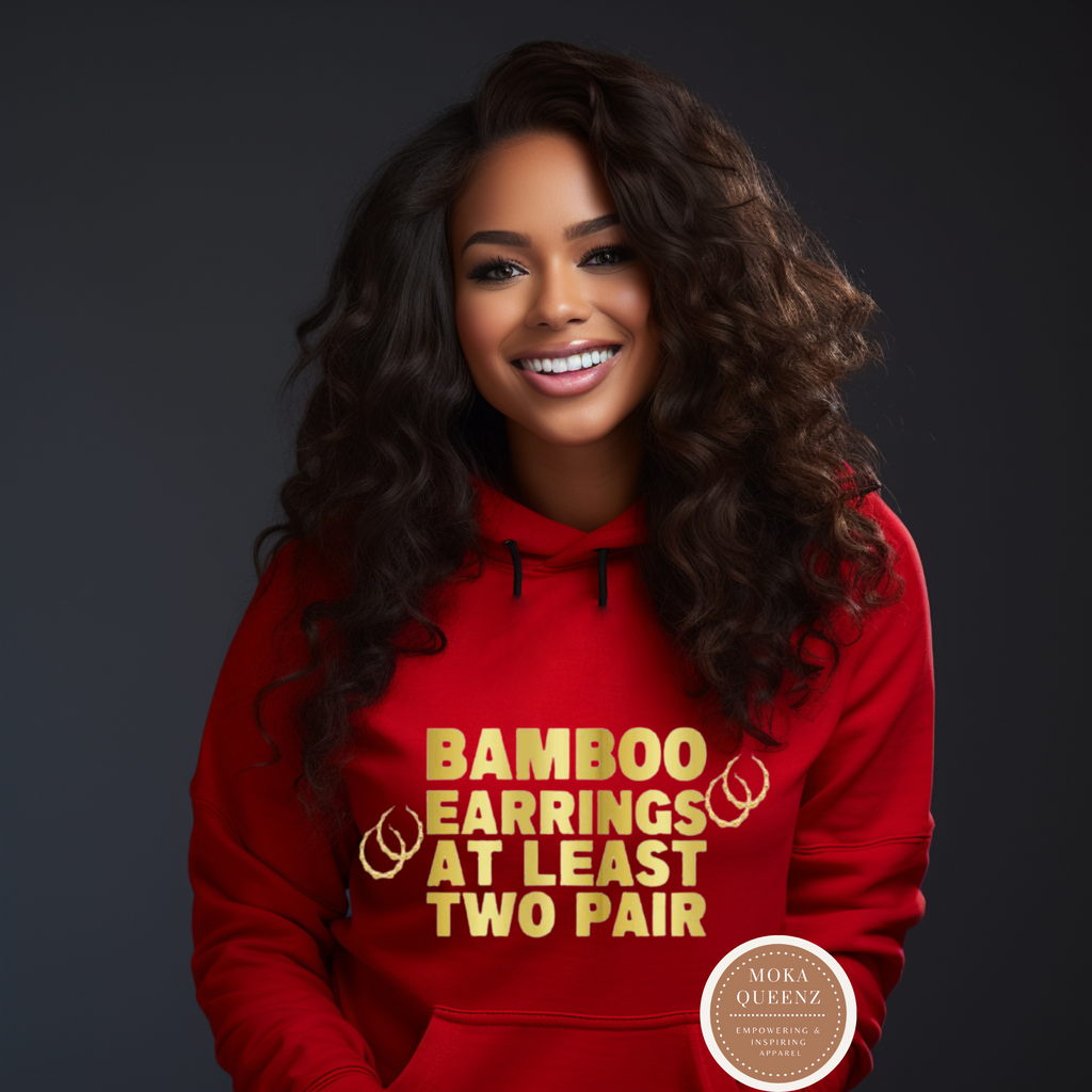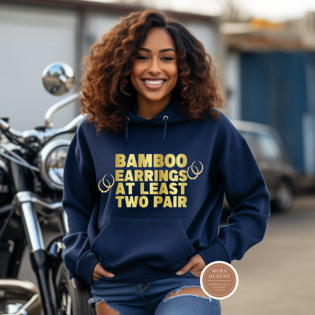 Channel the essence of old-school hip-hop with our “Bamboo Earrings At Least Two Pair” Sweatshirt. Inspired by iconic 80s lyrics, this graphic is more than fashion—it’s culture, history, and empowerment.