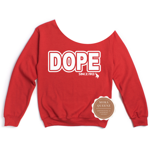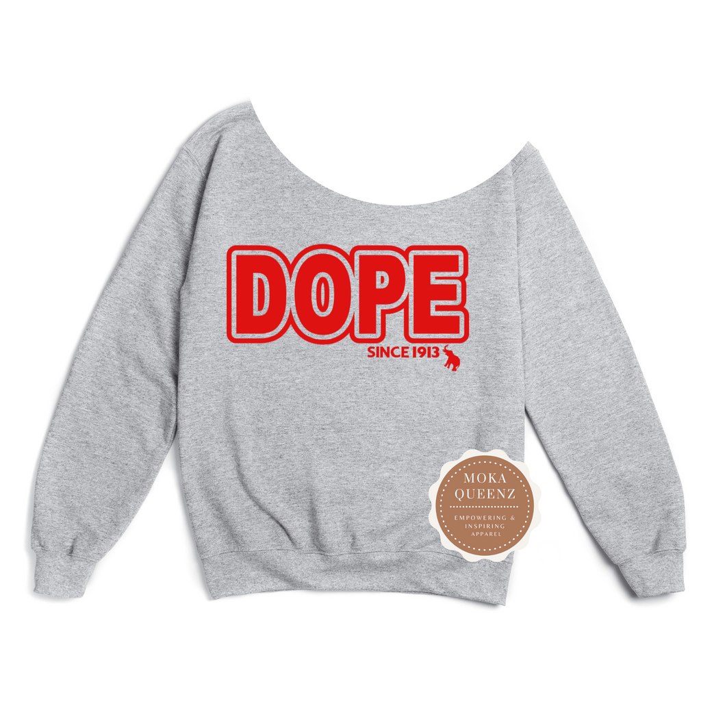 Step into sisterhood pride with our DOPE Since 1913 Off the Shoulder Sweatshirt.