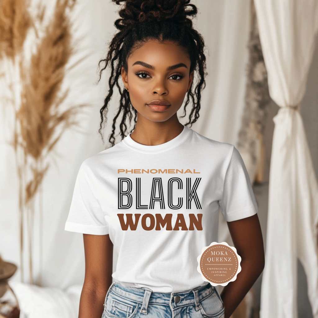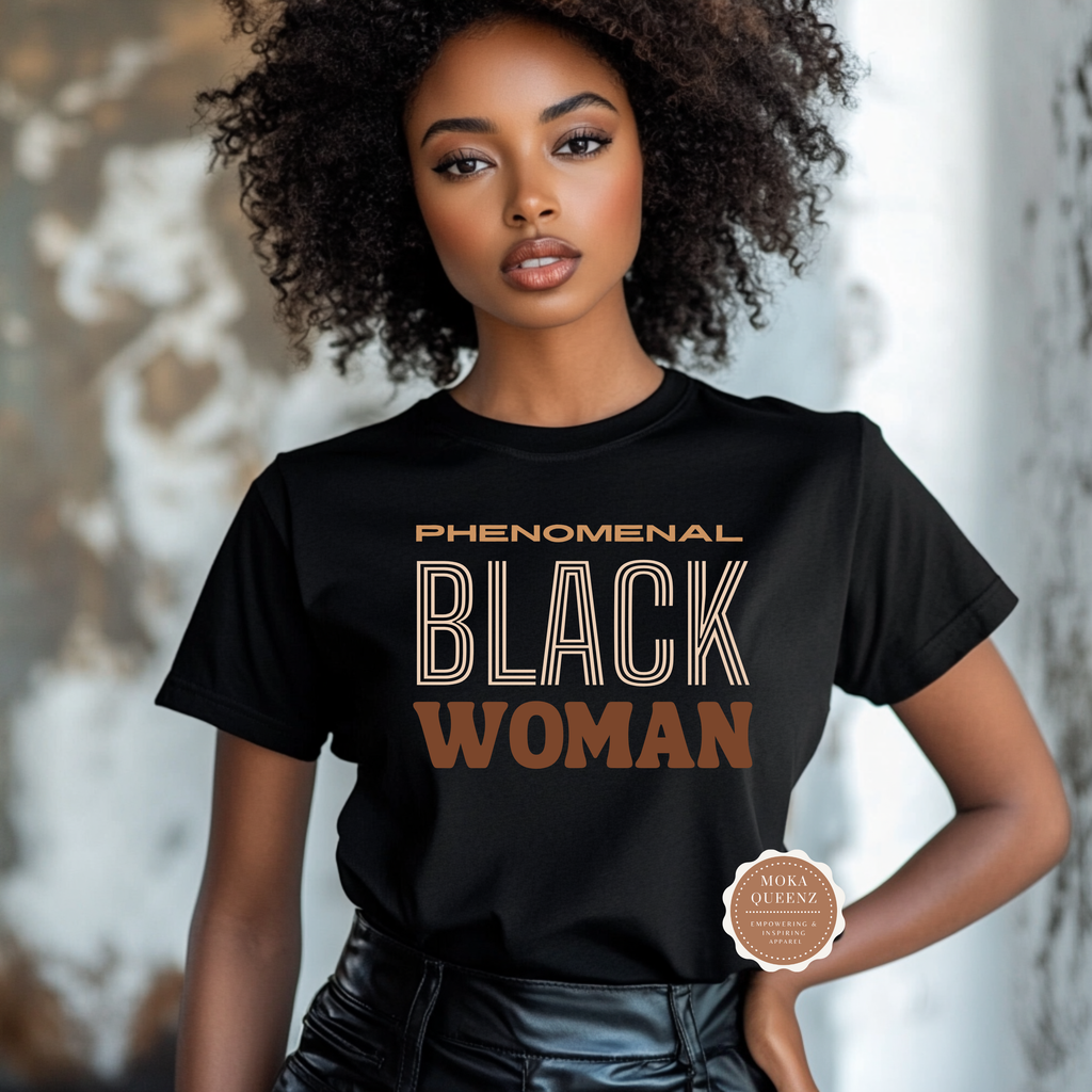 Professionally printed “Phenomenal Woman” design in rich brown tones